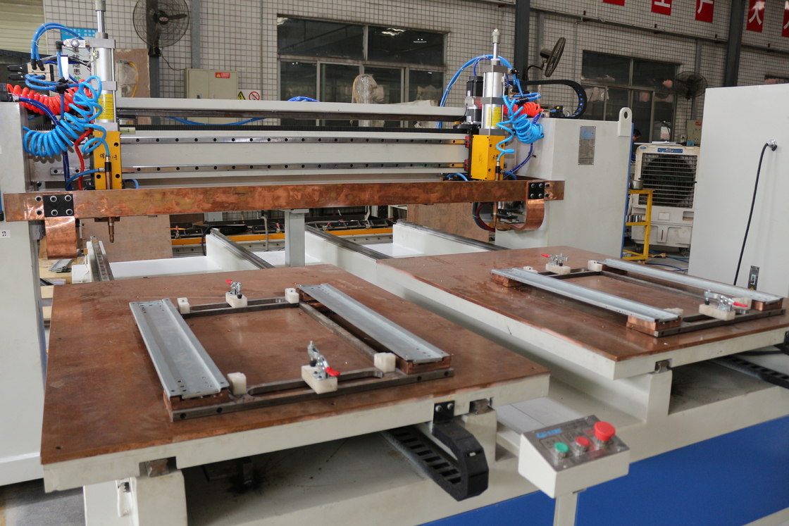 La larghezza di saldatura effettiva è da 1000 mm a 2000 mm, mentre la lunghezza di saldatura effettiva è di 300 mm (personalizzata). Lo spessore del materiale varia da 0,4 mm a 1,5 mm. Processo di lavoro * Posizionare manualmente il pezzo sul tavolo; * Premere il pulsante di avvio, quindi la macchina eseguirà automaticamente la saldatura per una linea di punti; * Dopo aver saldato una linea, spostare manualmente il prodotto su un'altra linea. Quindi premere di nuovo il pulsante di avvio. * Ciclo di lavoro